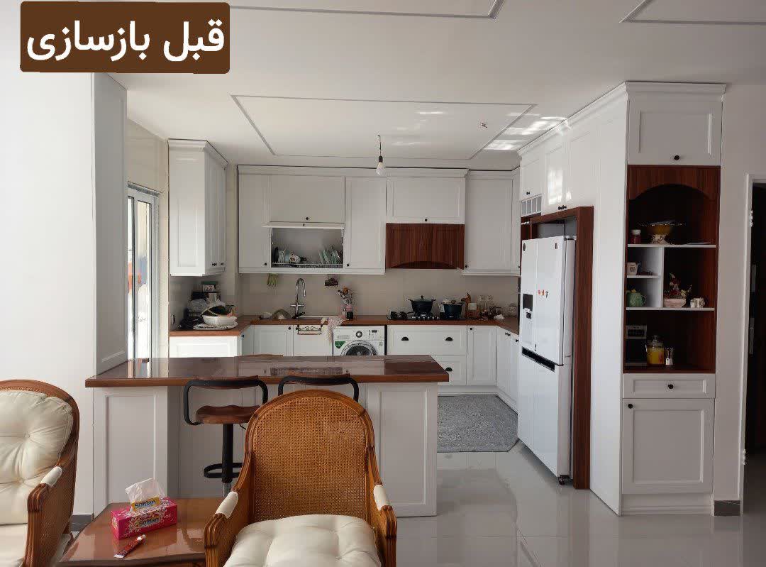 نمونه بازسازی شده بین کابینت با کاشی آجری سایز 60*30 درجه 1سفید.