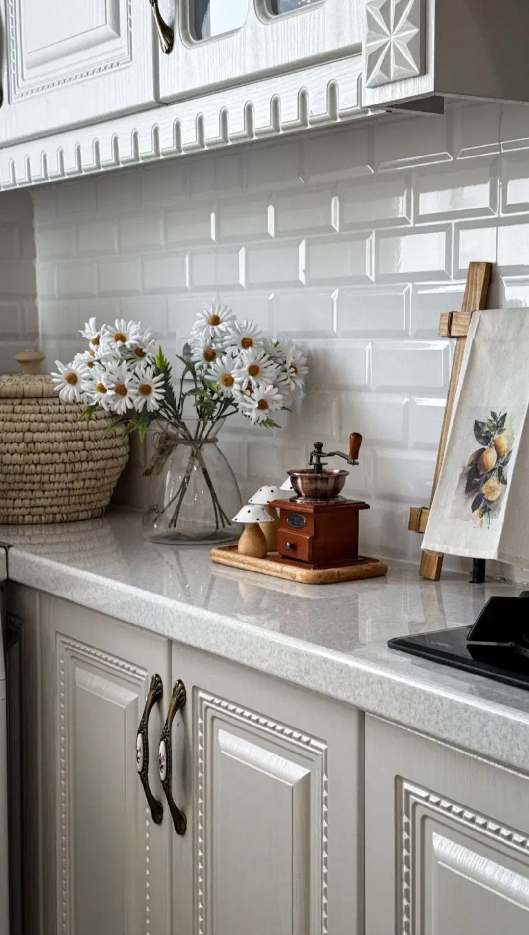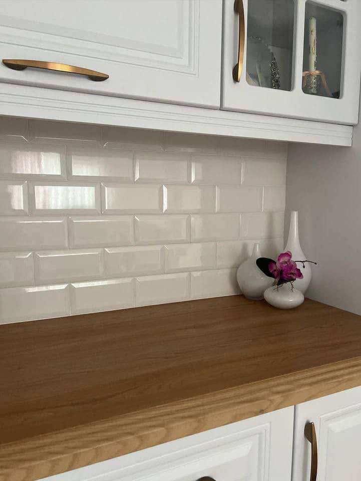 2. کابینت روشن یا سفید → کاشی رگهدار براق برای جذابیت بیشتر